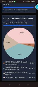 Pasangan nomor urut 4 ini memperoleh 88.334 suara, mengungguli tiga kandidat lainnya, menurut data Quick Count di situs resmi hitungancepat2024.okuselatankab.go.id.