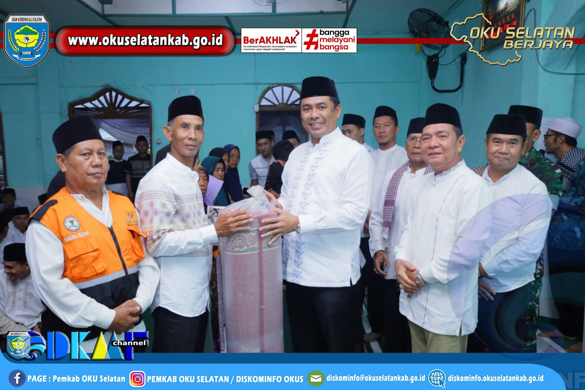 Selain bantuan sembako, pemerintah daerah juga menyerahkan bantuan berupa ambal (karpet) serta Al-Qur’an untuk Masjid Nurul Amal Desa Ulak Agung Ilir sebagai bentuk dukungan terhadap peningkatan sarana ibadah bagi masyarakat.