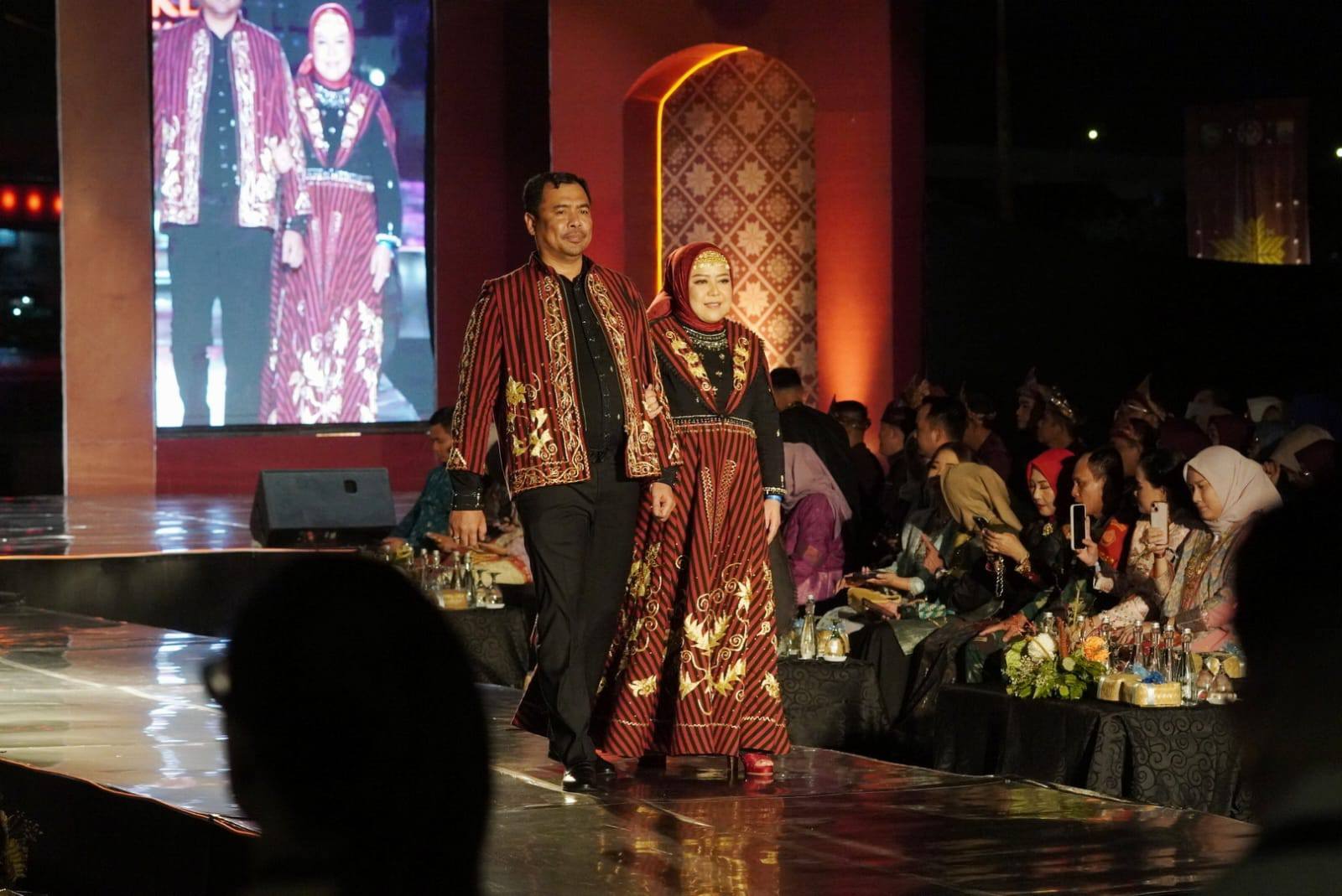 Dalam kesempatan tersebut, keduanya tampil anggun dalam ajang fashion show dengan memperkenalkan kain khas OKU Selatan. Mereka tampil beriringan bersama para kepala daerah lain yang juga mengenakan kain songket khas daerah masing-masing.