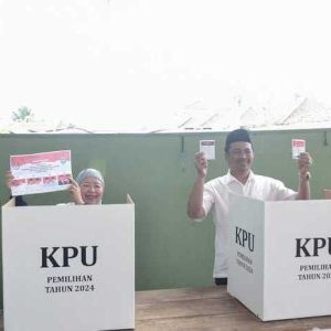 Setibanya di lokasi TPS, Abusama dan Yohana tampak kompak mengenakan busana berwarna putih, bersama H. Misnadi dan istrinya, Hj. Sumiyati Misnadi.